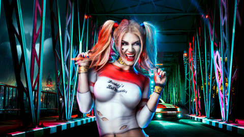 K van Niekerk, Harley quinn lover and photoshop artist created this piece from a multitude of stock imagery and the highest of high quality photo of Nikki. Using the in-studio lighting as inspiration to comp and create the colour grade.