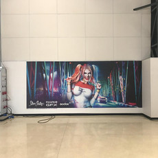 Super model and Instagram sensation Nikki Du Plessis posed as Harley Quinn for photographer Steve Casting for the Film and Video Expo in June 2019. The creative comp is in light of the live splash of colour shoot to be held at the expo. Steve printed out this awesome little piece of digital art at a staggering 2.6m and will also be showcasing the canvas at the Expo.